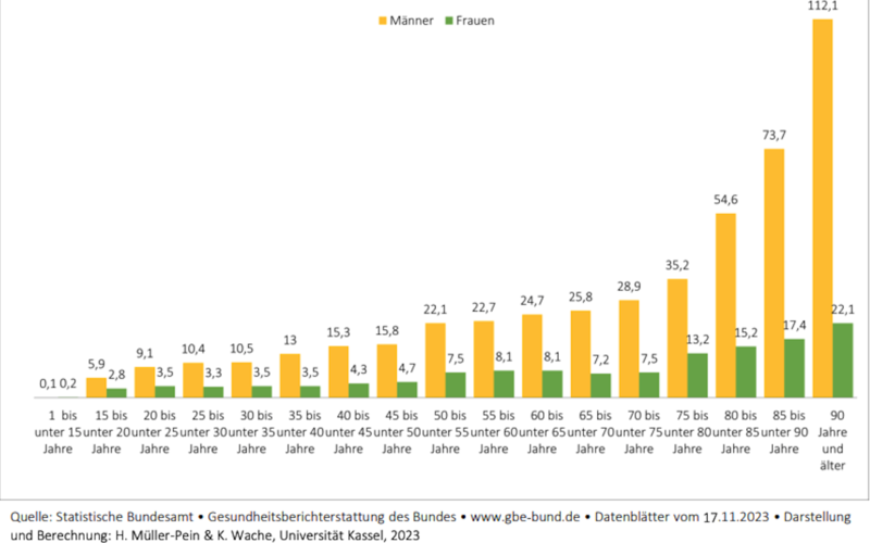Suizide nach Lebensalter in Deutschland 2022 (Rate):